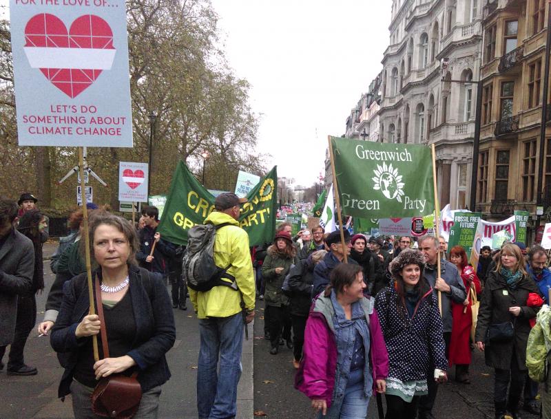 More than 50,000 people walked from Park Lane to Parliament Square. We were there to send a loud message to World Leaders that now is the time to act to ensure that greenhouse gas emissions are reduced to below 400ppm, so that any future rises in global temperatures are kept within 2 degrees. This can oly be done by keeping fossil fuels in the ground and financing a just transition to 100% renewable energy by 2050. The London march was a joyous occasion, with drumming, dancing and the ubiquitous Hare Krishna chants! According to 350.org there were over 2,300 similar events, spread over 175 Countries, involving millions of people - world leaders can no longer ignore this urgent call for action.